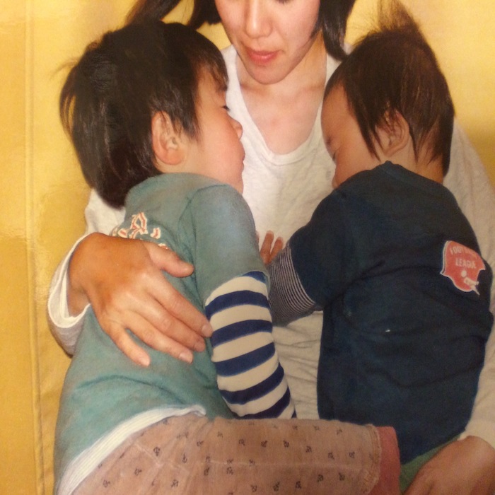 当時の写真、こんな幸せな姿。お揃いのDDのTシャツ兄弟お揃いコーデ楽しんでました。2人とも甘えん坊で、眠い時はよく2人抱っこで寝かしつけていた記憶。