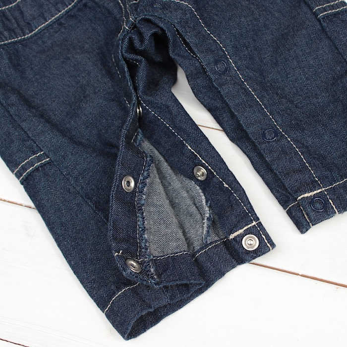 大人顔負けの素材感ながら、嬉しい股下スナップ付き♪