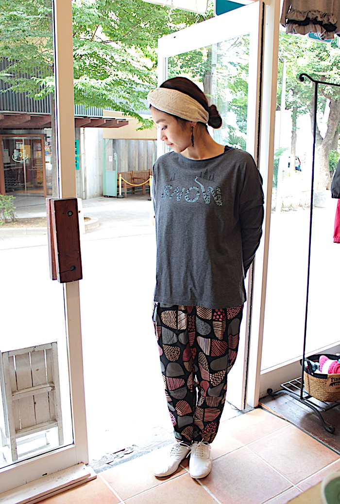 テキスタイルがステキなこちらのパンツ、mamaサイズもあります。