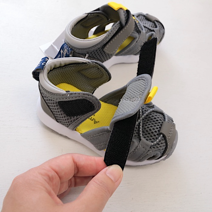 滑りにくいソールにゴム&面テープのベルト仕様。