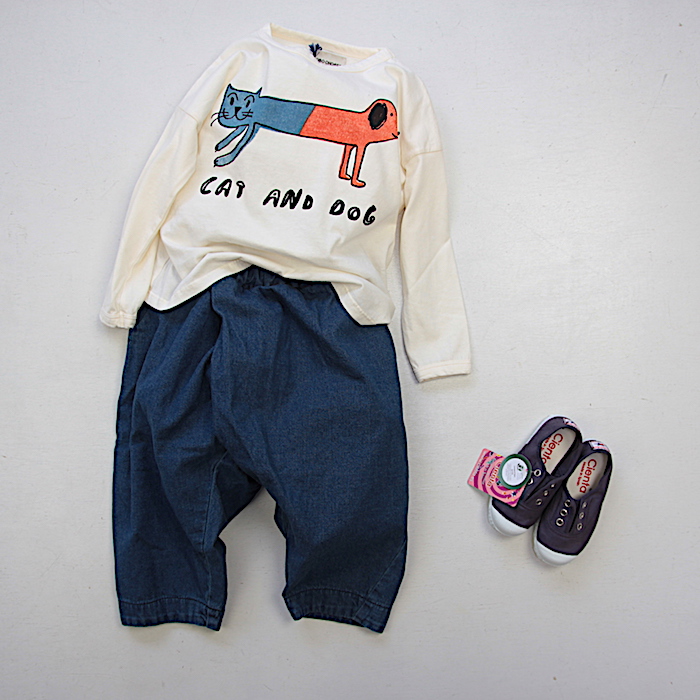 右は7分丈。フィッシャーマンパンツのようなアシンメトリーなシルエットが特徴です。