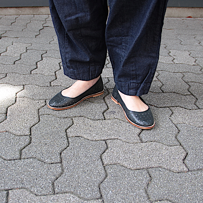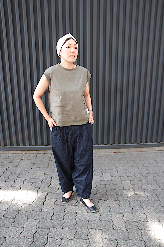 左は9分丈。裾をほんの少し絞るために施したダーツがアクセントになっています。