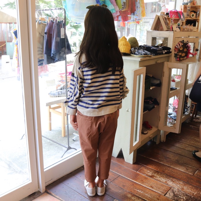 ■DENIM DUNGAREE/ボーダーフリフリT/130cm