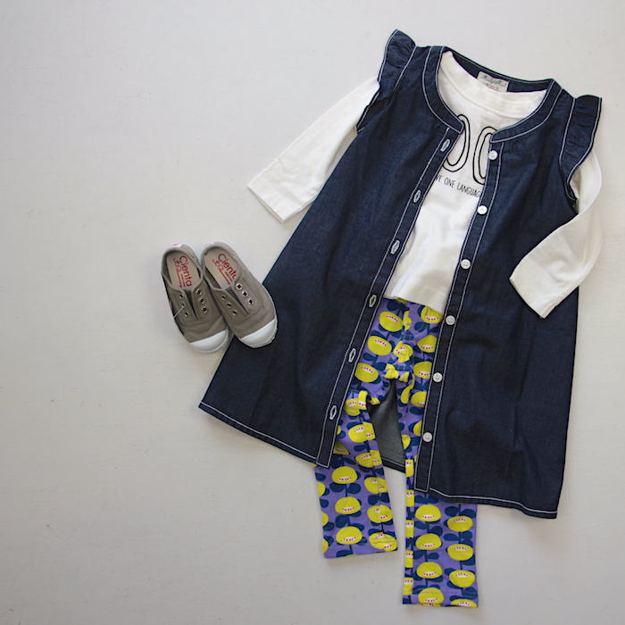 前開きワンピースは、Tシャツ&パンツスタイルの羽織としても楽しめますよ^^