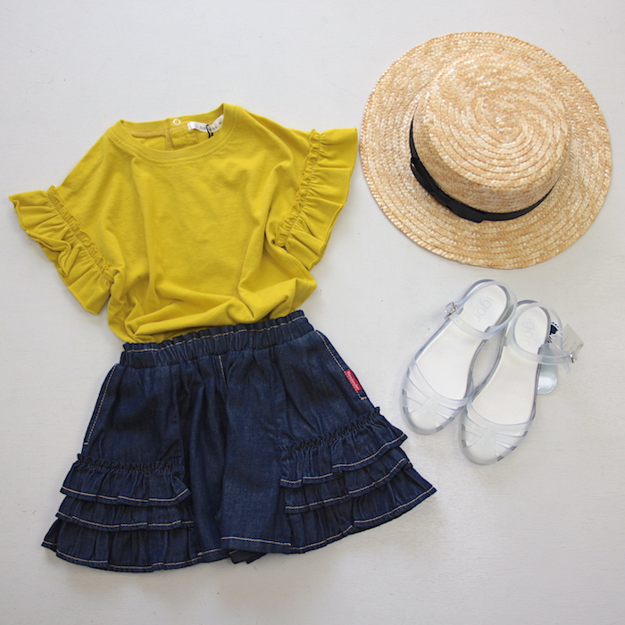 フリル使いが可愛らしい、薄手のデニムキュロットは。。