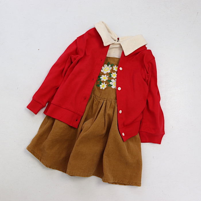 色がアクセントになる天竺のカーディガン