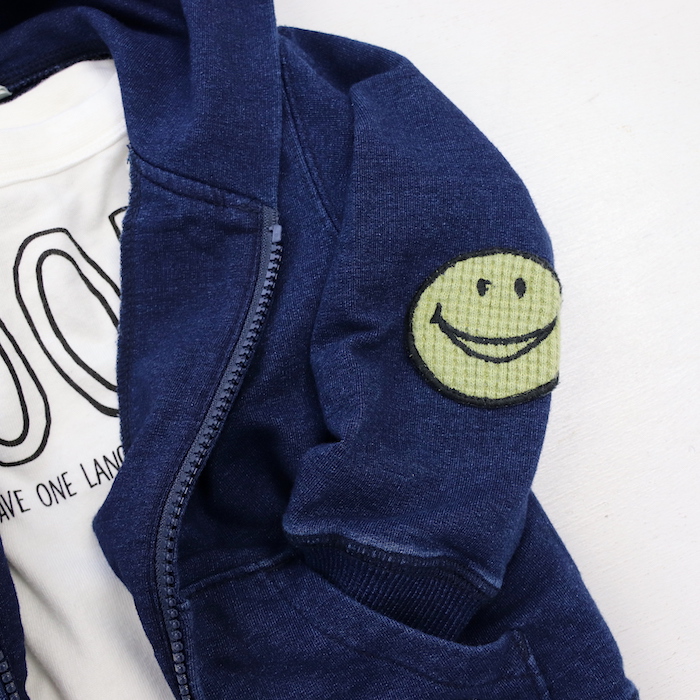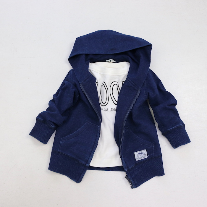 インディゴのミニミニ裏毛パーカー。