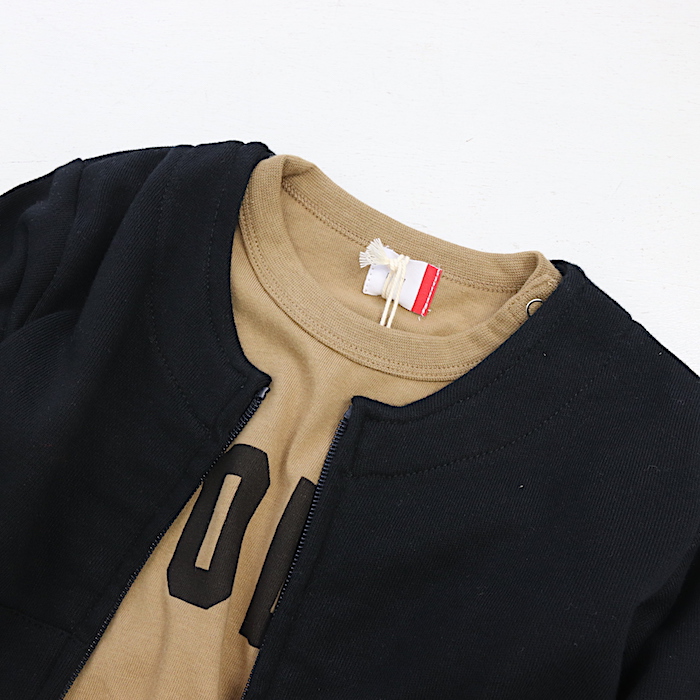 そして、ノーカラーの裏毛カーディガン。