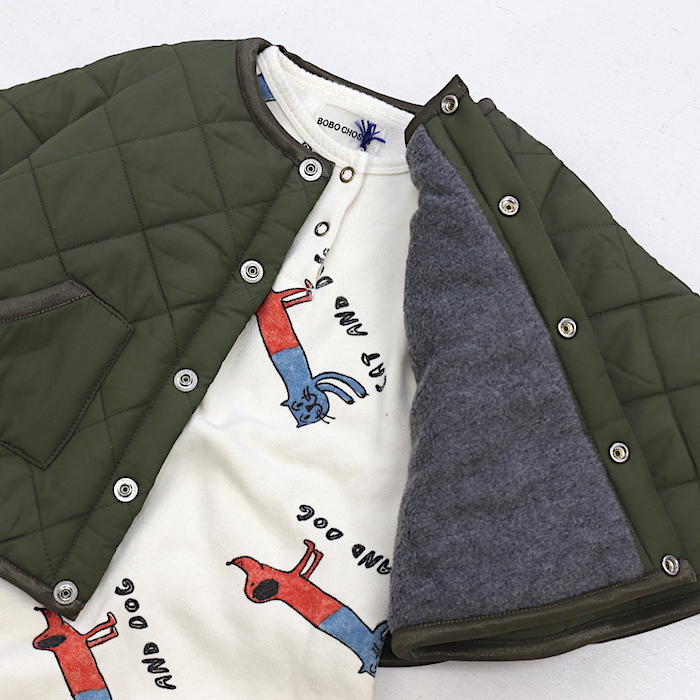 透湿撥水機能のあるタフタキルトにフリースを合わせた、保温性抜群のこちらは。。